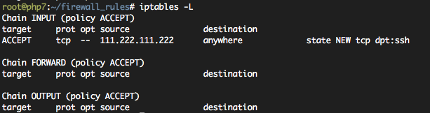 #iptables -A INPUT -s 111.222.111.222/32 -p tcp -m state --state NEW -m tcp --dport 22 -j ACCEPT