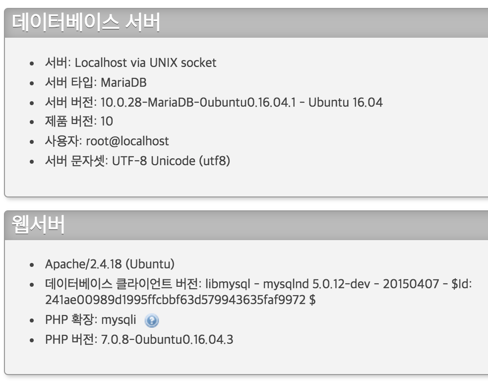 재부팅 후에 phpinfo 페이지와 phpmyadmin 가 잘 실행된다면 “재부팅이 가능한 서버” 라고 볼 수 있다.
