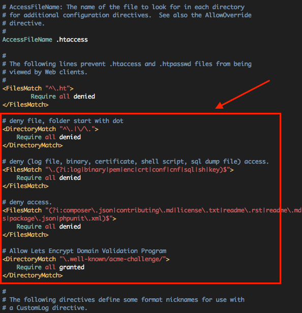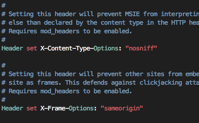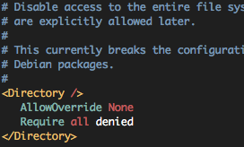 매우 권장하는 보안설정이므로 Ubuntu Apache 패키지 제작자가 미리 써두었다. 이미 다 쓰여 있으니까 주석(#) 만 제거하자.