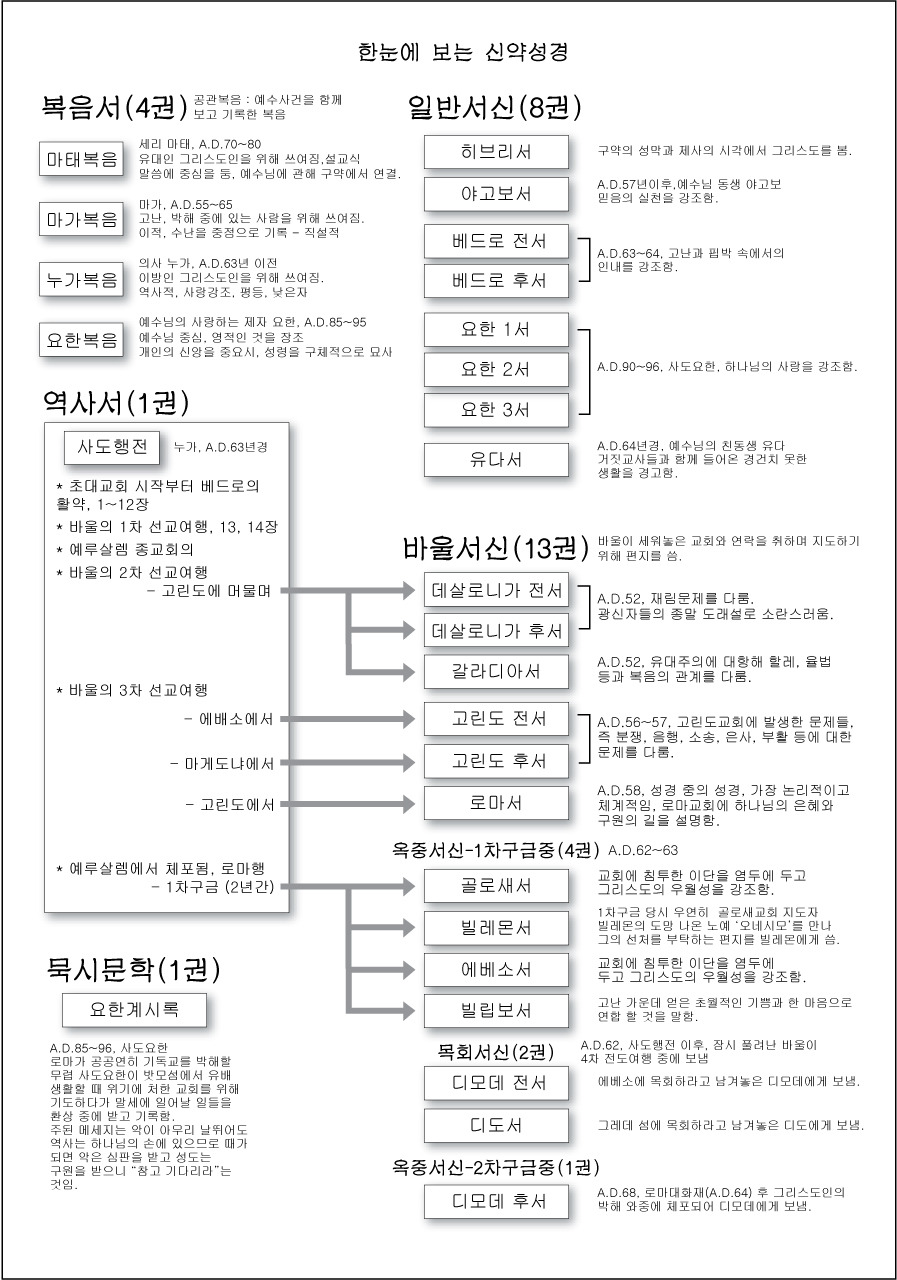 1. 마태복음 (28장) (1) 저자 : 세리 마태 (2) 기록 연대 : A.D. 50-70년 (3) 기록 목적 : * 예수가 구약에 예언된 그 메시아임을 증명하기 위하여. * 다시 율법으로 돌아가려는 팔레스타인의 그리스도인을 위하여. * 예수를 직접 목격한 복음의 첫 세대가 예수의 행적을 분명한 기록으로 남기기 위하여. (4) 줄거리 : * 예수의 말씀을 크게 다섯 가지 묶음으로 나누어 실었는데, 산상설교, 제자들의 파송 연설, 비유 연설, 교회에 관한 가르침, 그리고 종말에 관한 연설. * 예수를 그분 안에서 이스라엘 역사가 완성될 메시야로 묘사하는 것이요, * 이스라엘을 대신하여 들어선 공동체로서 그리스도교 교회를 시야에 끌어들이는 것이다. * 예수를 모세와 같이 위대한 종말적인 예언자이며 교사로 그린다(17:5 참조). * 예수는 율법과 예언서에 담겨 있는 뜻을 올바르게 찾아낸 분으로 완벽하게 실현시킨 분. * 예수가 고난 받는 사람들 의 위대한 종말적 구원자라는 사실이다. * 예수는 "자기 백성을 그들의 죄에서 건지실 분이다"(1:21. 20:28; 26:28 참조).