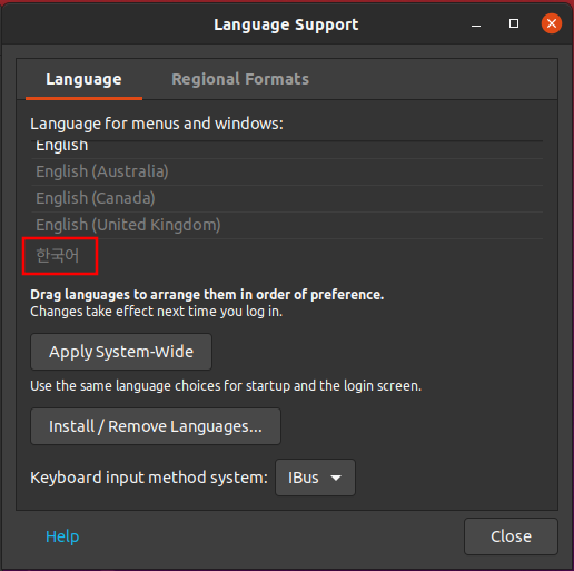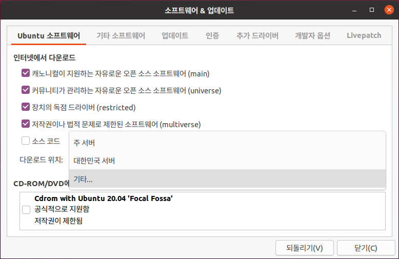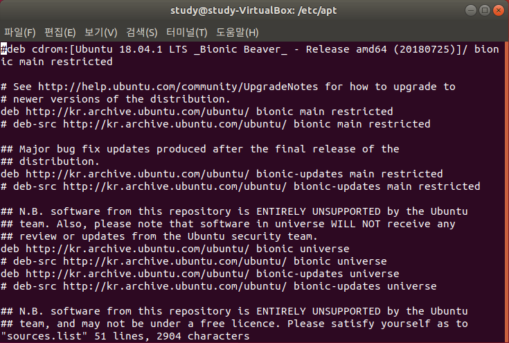 기본 언어값 UTF-8 에 대해서 주석처리되어 있을 텐데 주석(#)을 제거해 준다.