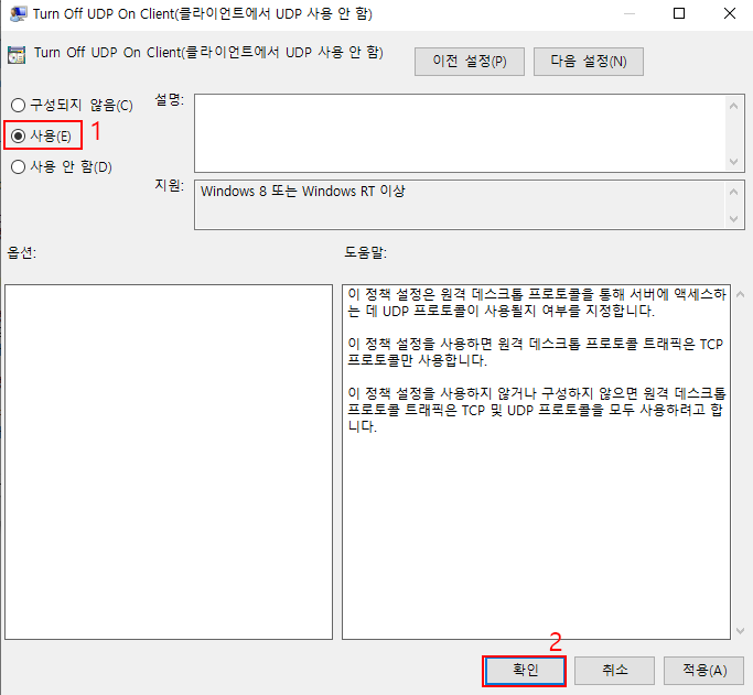 RDP에서 TCP 프로토콜 강제하기 (클라이언트)
