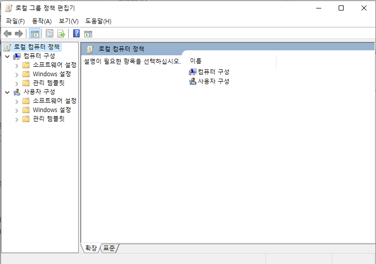2. 그룹정책 편집기가 열리면 아래 경로로 이동합니다.